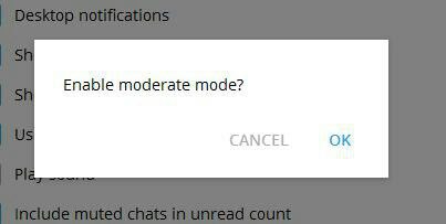 If you type "moderate" at Settings in TDesktop, it will allow to enable "Moderate mode".