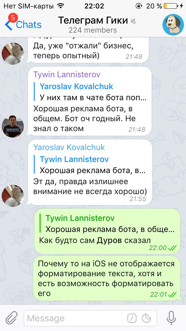 Почему то на iOS не отображается форматирование текста, хотя и есть возможность форматировать его
