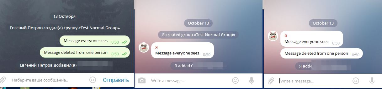 Вот как было для двух участников. Я удалил у обоих последнее сообщение и у второго удалил среднее сообщение, потом добавил третьего участника