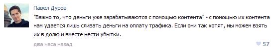 Дуров в своё время по поводу претензий Сергея Лазарева на музыкальный контент в ВК. Забавно.