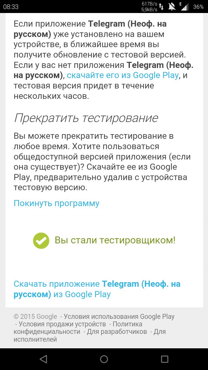 в группу обязательно надо добавляться чтобы сюда пускало: https://play.google.com/apps/testing/org.telegram.android