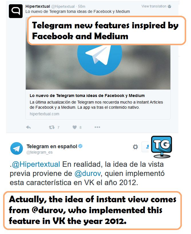 talking about Telegraph (via telegram.me/tglive/286)
