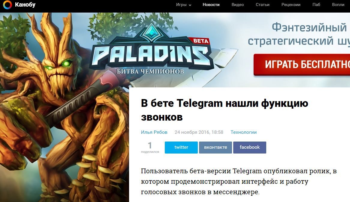 Если такая новость появилась даже на Канобу, это значит, что людям нужны звонки в телеге