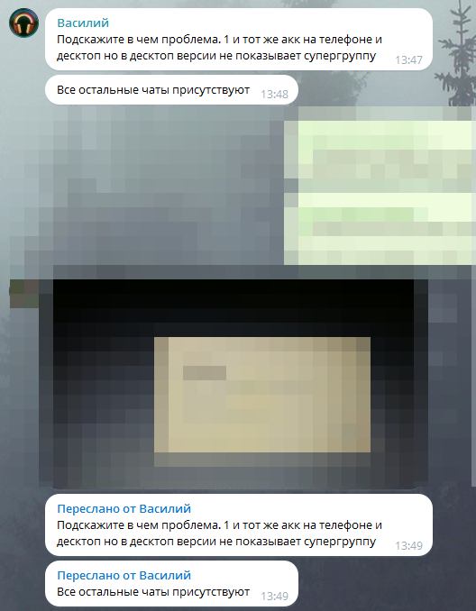 Подскажите в чем проблема. 1 и тот же акк на телефоне и десктоп но в десктоп версии не показывает супергруппу