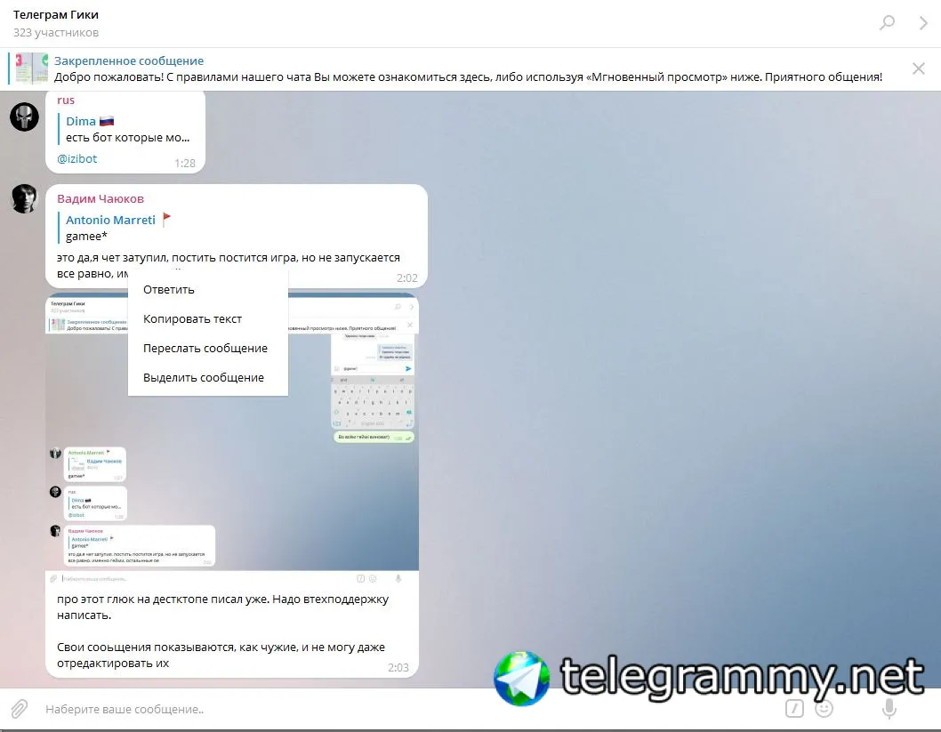 Свои сооьщения показываются, как чужие, и не могу даже отредактировать их