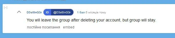 Но всё равно, группы должны остаться. Ну, в конце-концов, можем сейчас попробовать. Можешь создать акк, добавить меня, еще кого-то, а потом удалиться