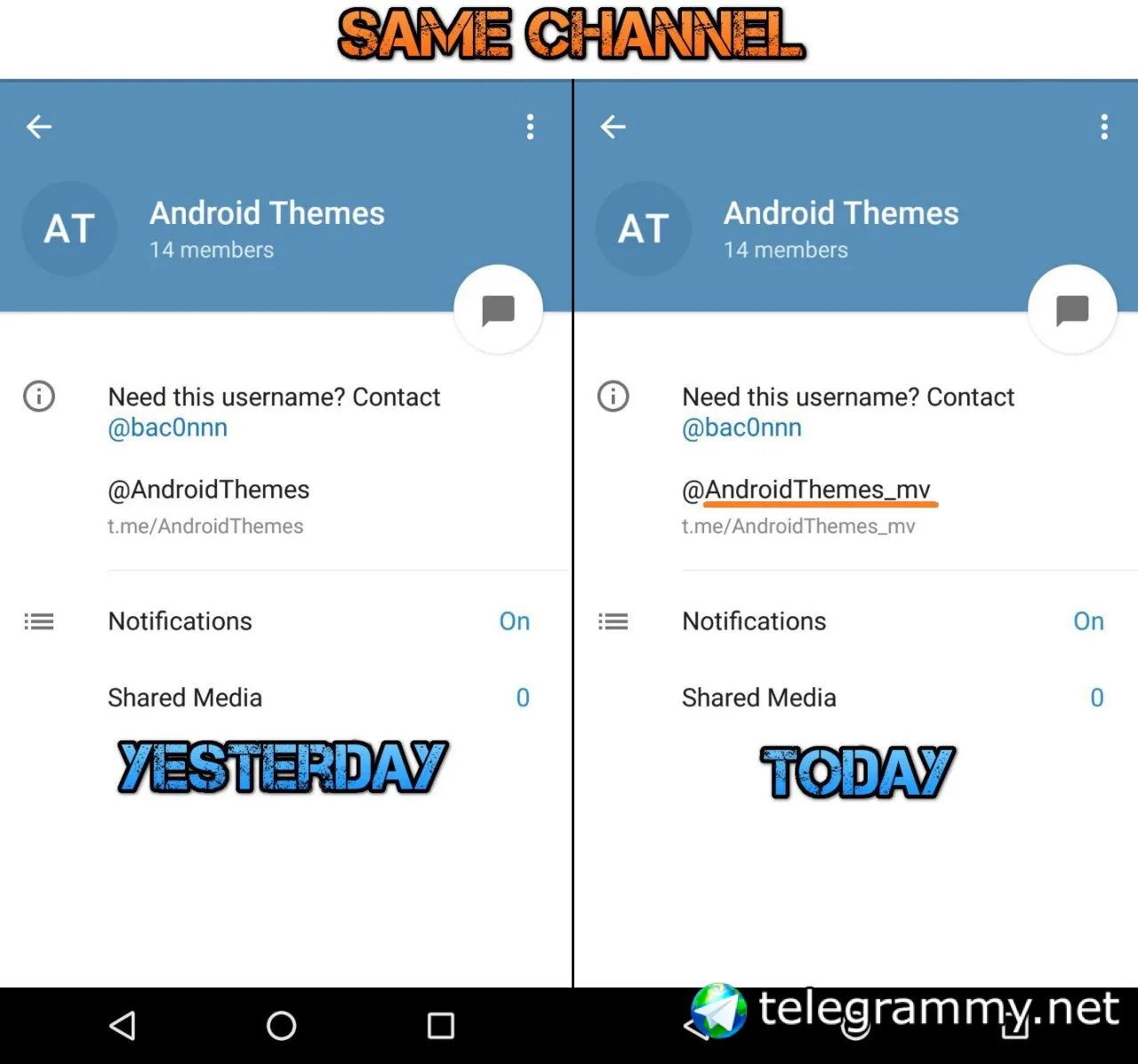 For example, look what happened with @androidThemes, yesterday was a channel ruled by someone, and today he noticed that his alias was moved to @androidThemes_mv.