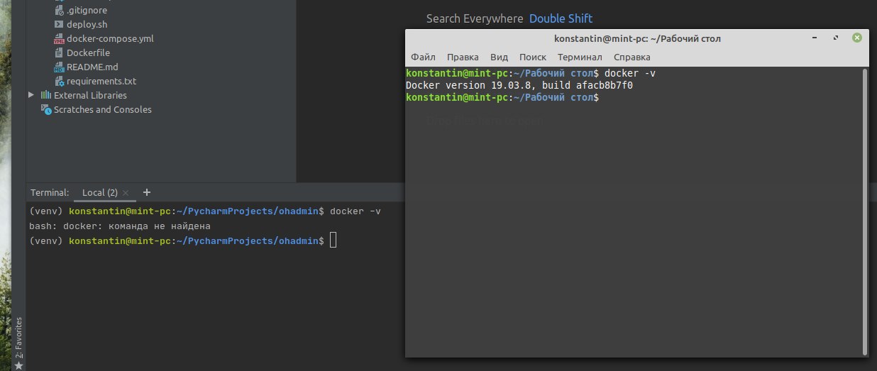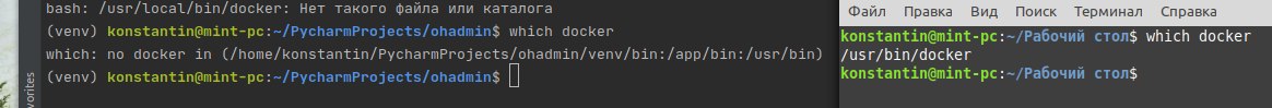 Привет всем, поставил минт, в терминале guake поставил docker и docker compose, они поставились. Установил pycharm(это ide для python) в настройках поставил ссылку на шелл /bin/bash и в нем не оказалось docker, даже sudo нет, подскажите как установить тот шелл в который я установил docker (системный терминал ссылается на /bin/bash и в нем есть докер)?