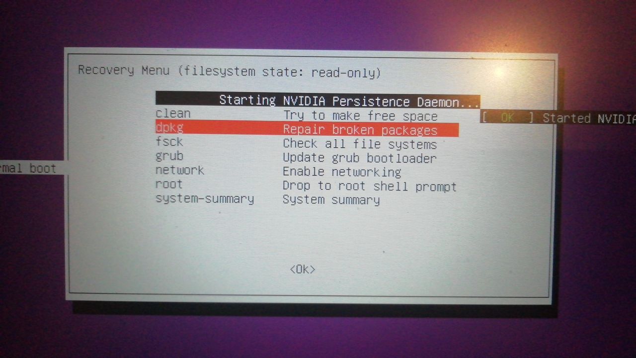Вот хорошо, на всякий случай сделай fsck, потом grub, потом dpkg )))
