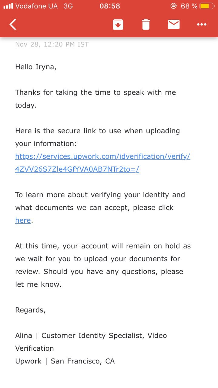 вуаля. Адрес и имя должены совпадать с тем, что на upwork