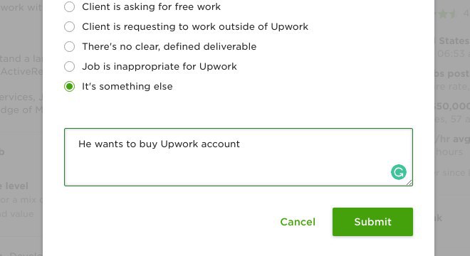 клиент пишет "Can I buy your upwork account?" что это?