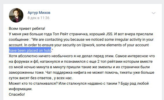 In order to ensure your security on Upwork, some elements of your account have been placed on hold.