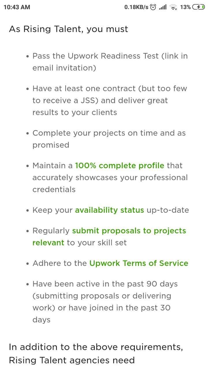 If you are selected as a Rising Talent, you will receive an email welcoming you to the program or inviting you to complete your profile to qualify. As a reminder, we look at a variety of factors when determining whether to award Rising Talent status. This includes client feedback, the overall strength of your profile upon submission, including prior experience and skills and your educational background, as well as the opportunities available in the market. Therefore, even new freelancers who have yet to complete any projects on Upwork can be admitted into the Rising Talent program.
