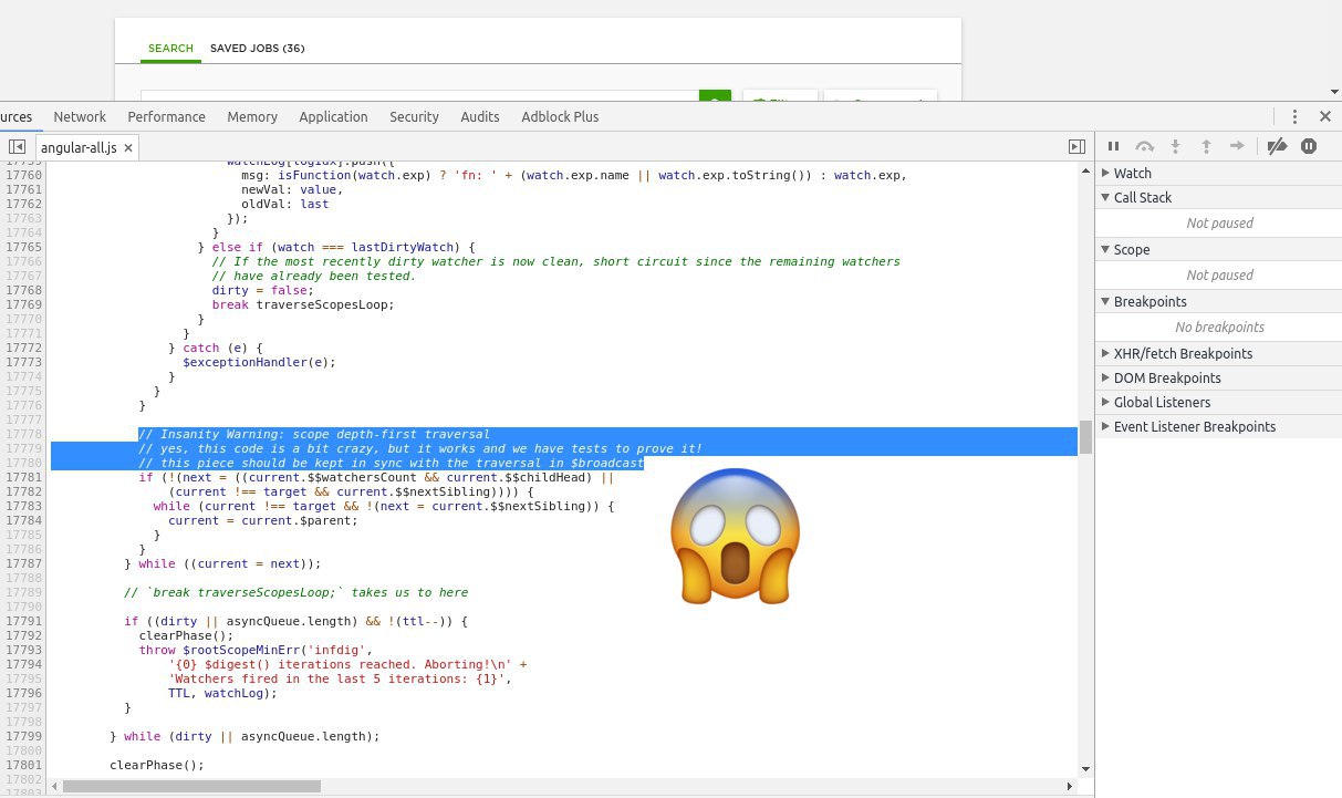 Трэш угар вложенные бесконечные циклы и содомия, и всё это в ангуляре. Вот почему апворк невзначай скушал весь мой cpu.
