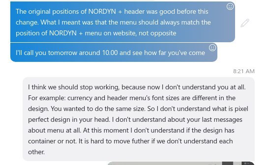 Хотел от поправок отказаться написал что нехочу сним (клиентом) работать и знаете что он говорит ай и ненадо этих поправок делать и так сойдет и новые майлстоуны добавил