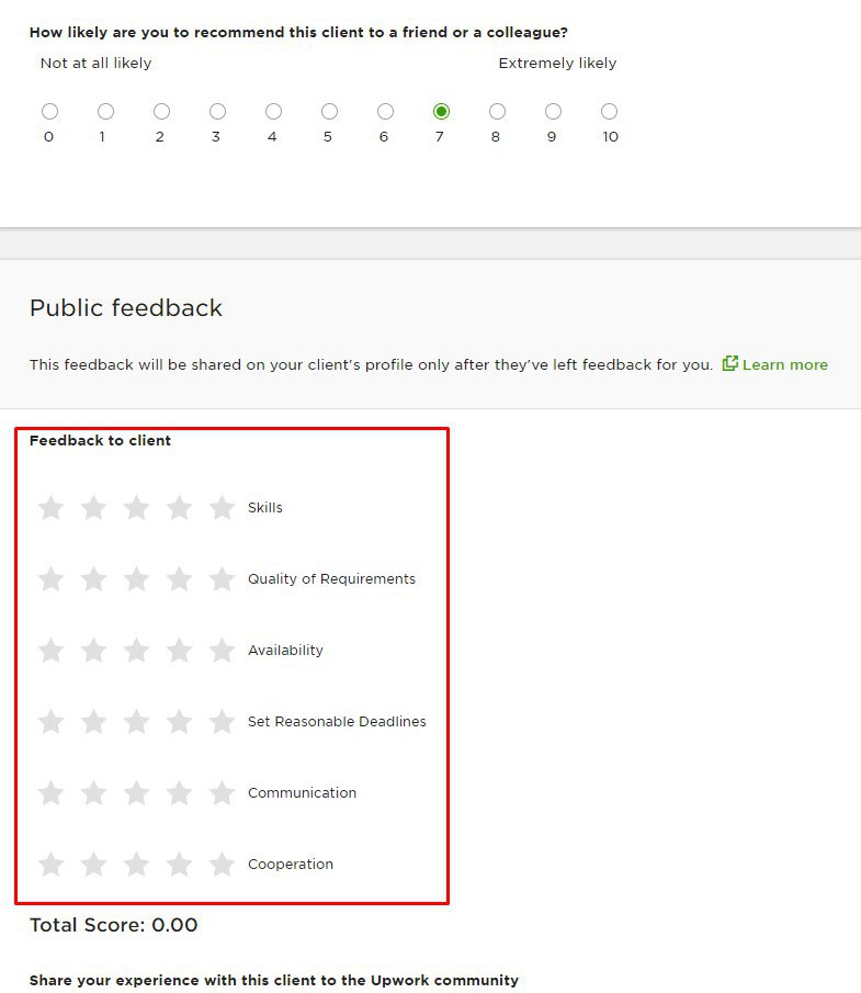 Такой вопрос: почему-то не могу поставить звездочи в отзыве о клиенте (public feedback) в предыдущем контракте была такая возможность, а сейчас не активные