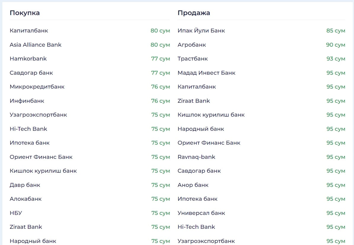 вот курсы в разных банках