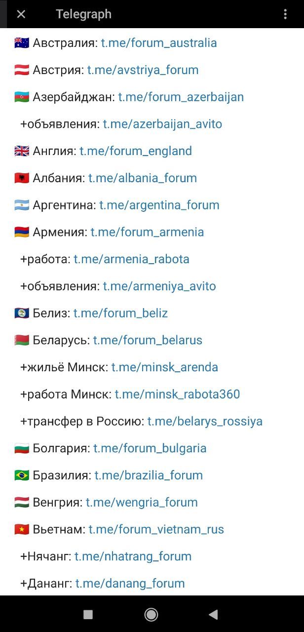 💬 Полный список русскоязычных ТЕЛЕГРАМ чатов, по 105 странам МИРА ⤵️
