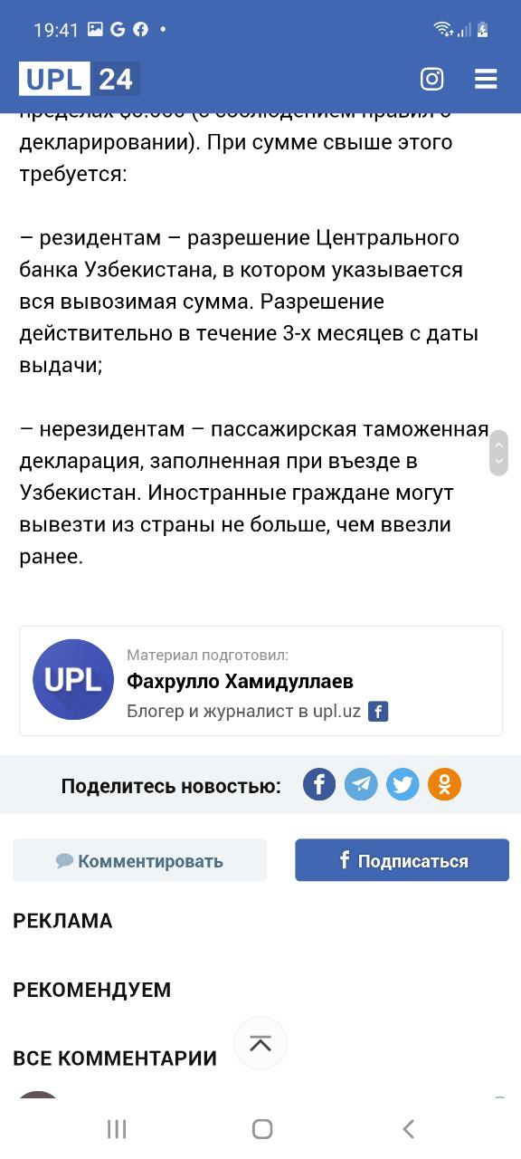 это тоже из вашего сообщения нерезидентами — на основании пассажирской таможенной декларации, в пределах суммы средств, ввезенных в Республику Узбекистан, а также призерами или участниками международных соревнований (конкурсов, олимпиад), организованных в республике в установленном порядке, на основании документов, подтверждающих законность получения средств.