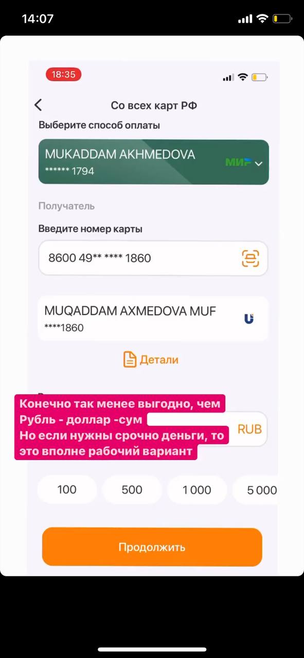 Инфа по переводу рублей на узб карты, может кому понадобится!