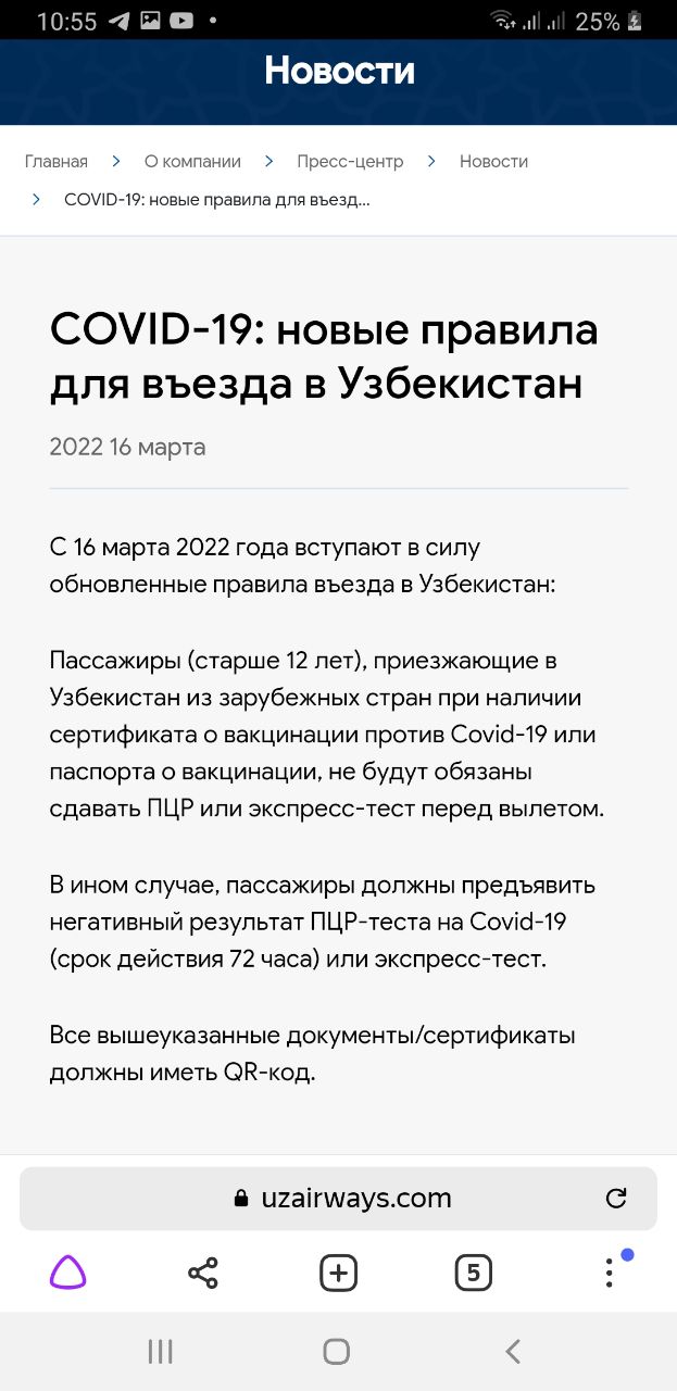 Доброе утро. Летим 25.04 Из Дели в Ташкент. Нужен ли ПЦР тест если не вакцинированны?