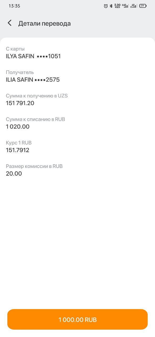 Я тоже вчера пробовал, но так очень не выгодный курс выходит, для сравнения снял я по курсу 136 сум за рубль, это с карты тинькофф, при этом в том же апельсине можно перевести с русской карты в сумы по курсу 151, а через приложение тинькофф было 157 (по номеру телефона)