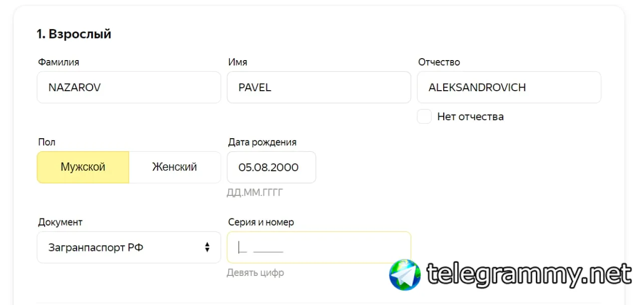 я тоже отчество не вписывал. Вы через какой сайт покупали билеты? Я через Яндекс Путешествия
