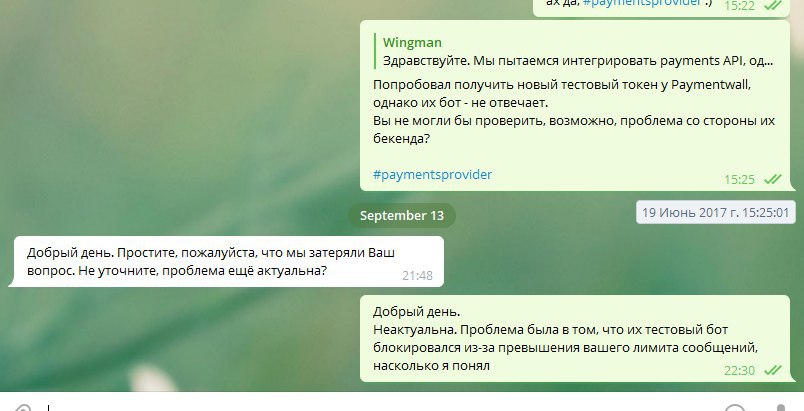 вот примерно так работает поддержка телеграма :)