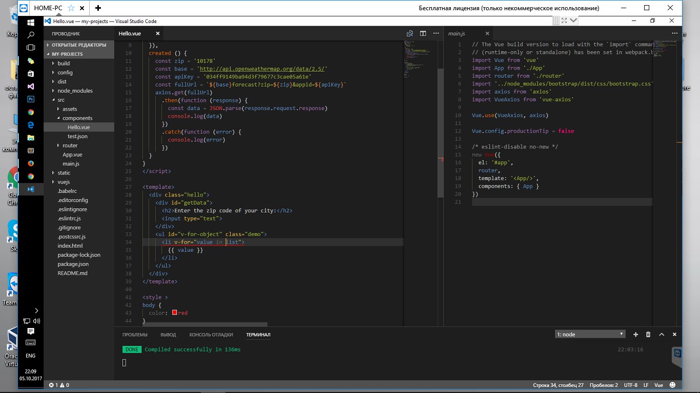 Всего кода я не вижу, но думаю, что тебе нужно делать this.list = JSON.parse(response)