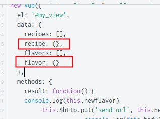 this.$http.put('send url', this.newflavor[0]).then((data)если отправить один вкус то окей,