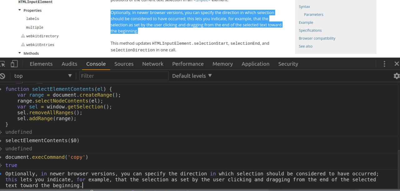 т.е. придется сделать текст видимым, селектнуть его и сделать copy