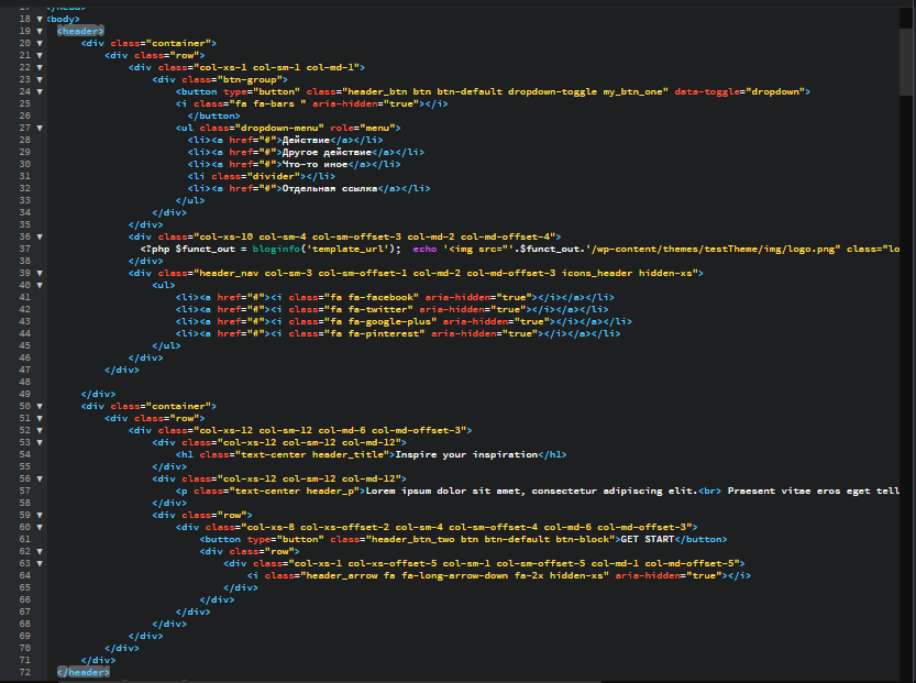 вот код - <?php $funct_out = bloginfo('template_url'); echo '<img src="'.$funct_out.'/wp-content/themes/testTheme/img/logo.png" class="logo img-responsive center-block" alt="logo">'; ?>