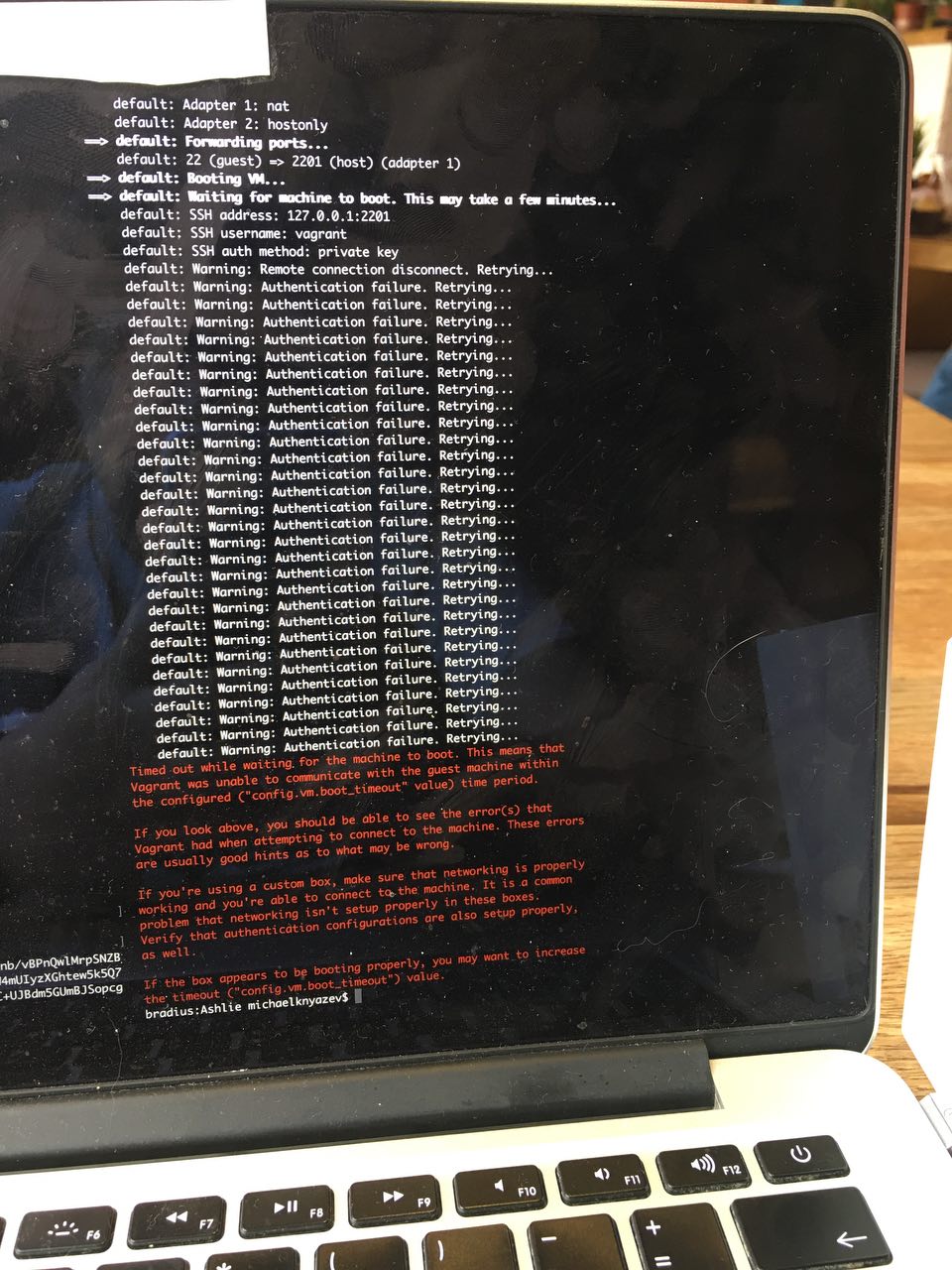 нагуглил трабл с приватным ключем в этой сборке вагранта, попытался заменить на гостевой