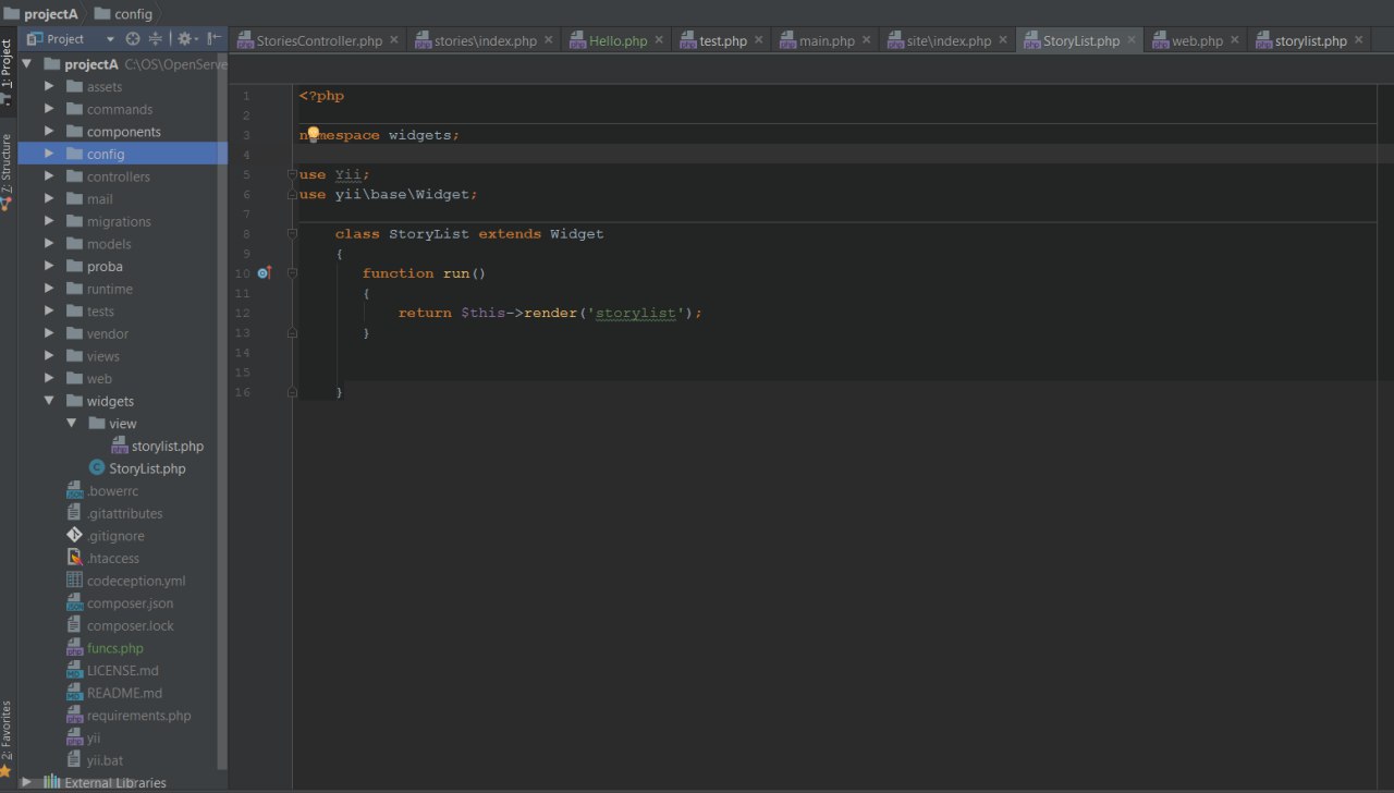 Доброго всем дня! У меня проблема, yii не видит виджет, Class 'widgets\StoryList' not found - во что пишет! код виджета и структура папок