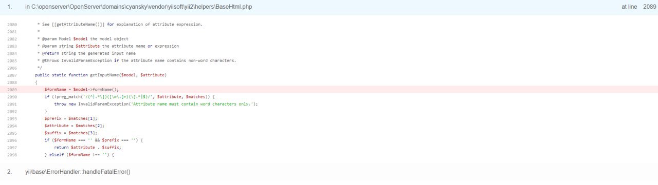Изза чего выскакивает ошибка Call to a member function formName() on null?