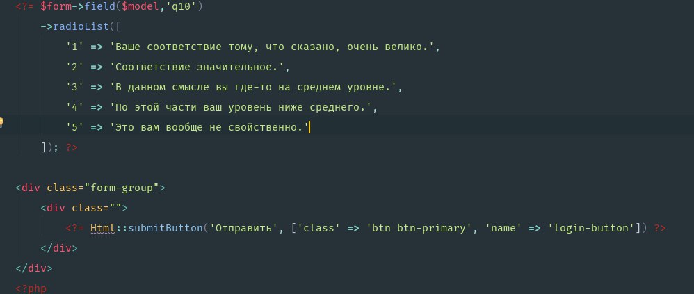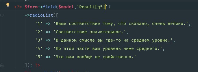 $form->field('Result', 'q5')->radioList(...)