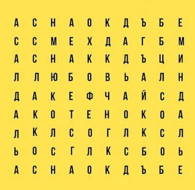 Пробегитесь глазами по этим буквам. Какое слово вы заметили первым?