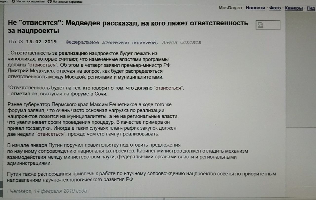 Че то я не въехала... Медведев говорит о том, что не надо после плана ждать, чтоб закупку провести!? Если будет "отвисаться"...то понесёт ответственность?