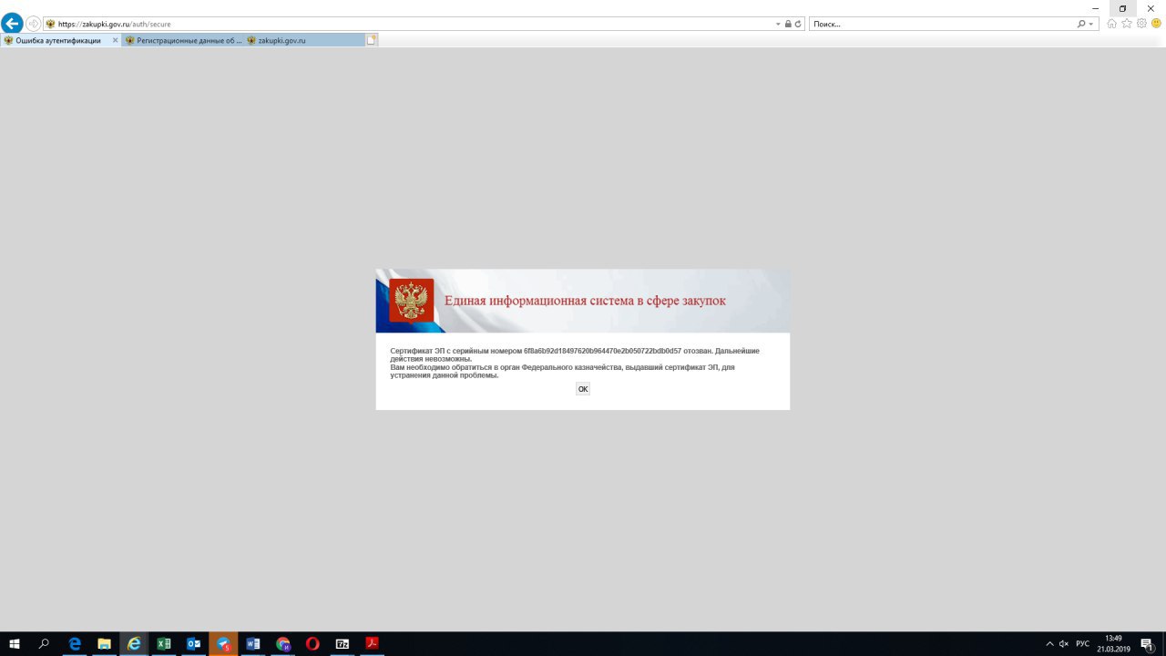 21 марта 2019 года с 14-00 по московскому времени полностью недоступен вход в личный кабинет ЕИС по Закону № 44-ФЗ.
