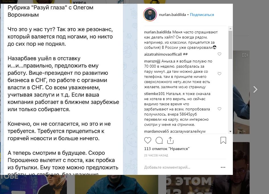 Заглянул для интереса в инсту этого бадайба