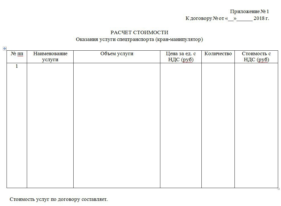 И вот спецификация из проекта контракта: