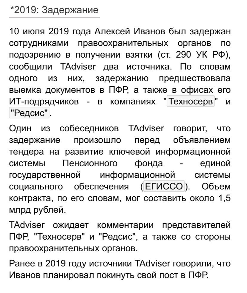 Вот так новости. TAdviser сообщает о задержании зампредседателя правления Пенсионного фонда Алексея Иванова, курировавшего в фонде развитие ИТ - за получение взятки накануне тендера на выбор поставщика ИТ-услуг. http://www.tadviser.ru/a/359583