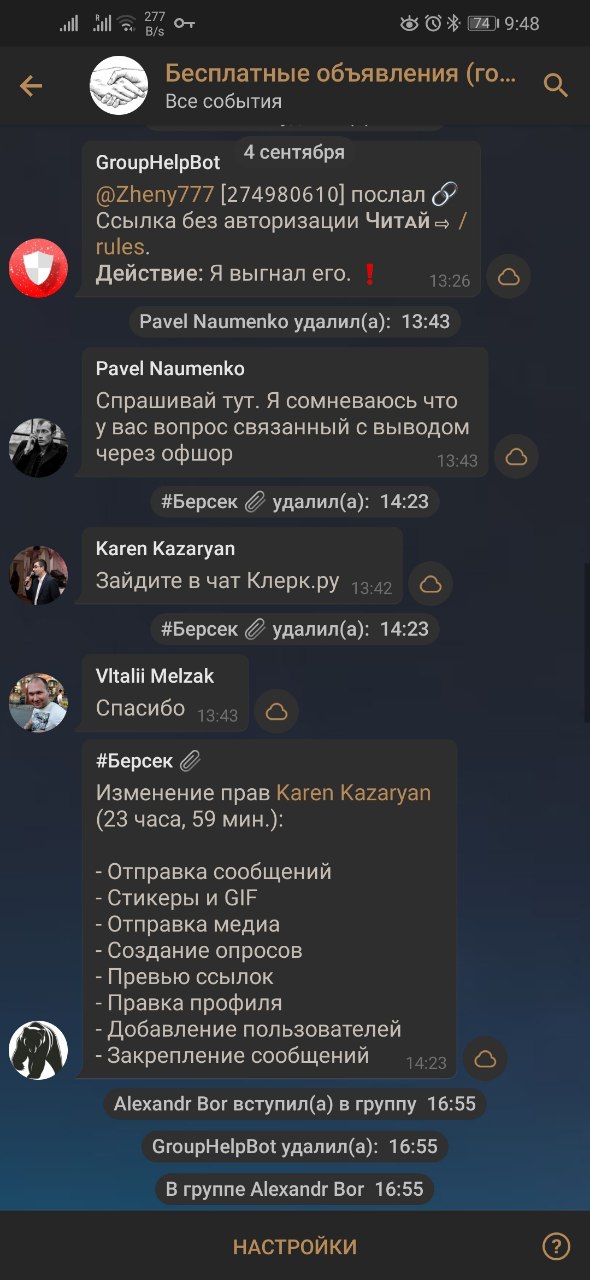 Я назначу Вас администратором временно, отправите три сообщения, а потом сниму права. Посмотрим, что из этого получится