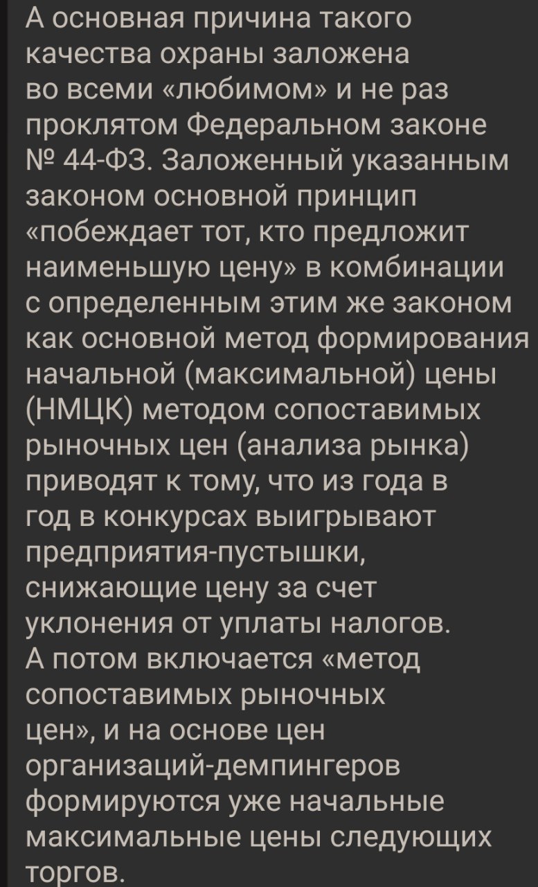 Про охрану - да, лицензия требуется. Но есть и объекты, которые может только ФГУП росгвардии охранять. А так да, демпинг до 60% в среднем. Конкурсами проводят, но чаще аукционы