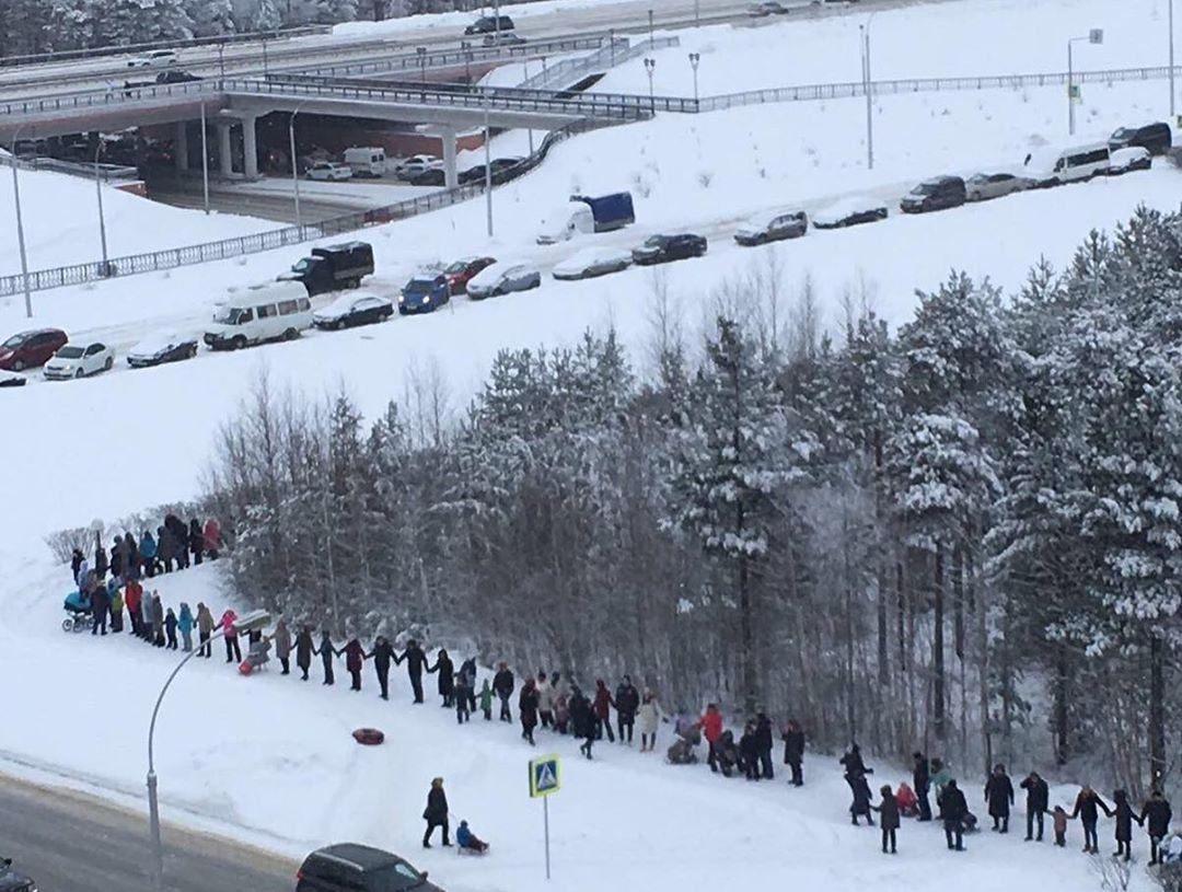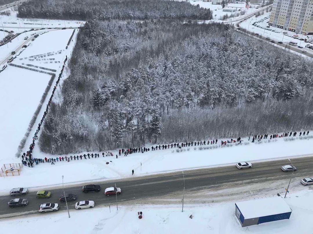 ❗️В Сургуте более 300 человек вышли «обнимать лес», на месте которого хотят построить автовокзал.