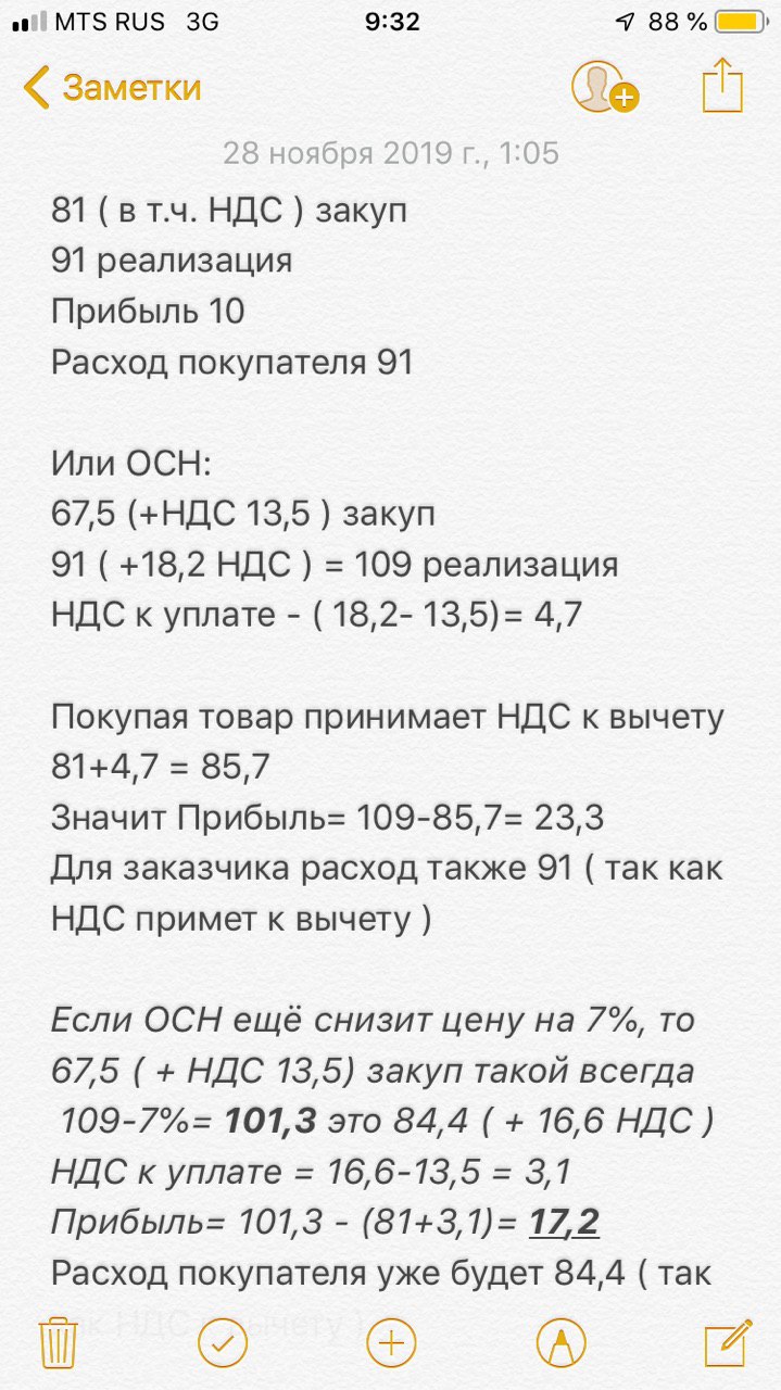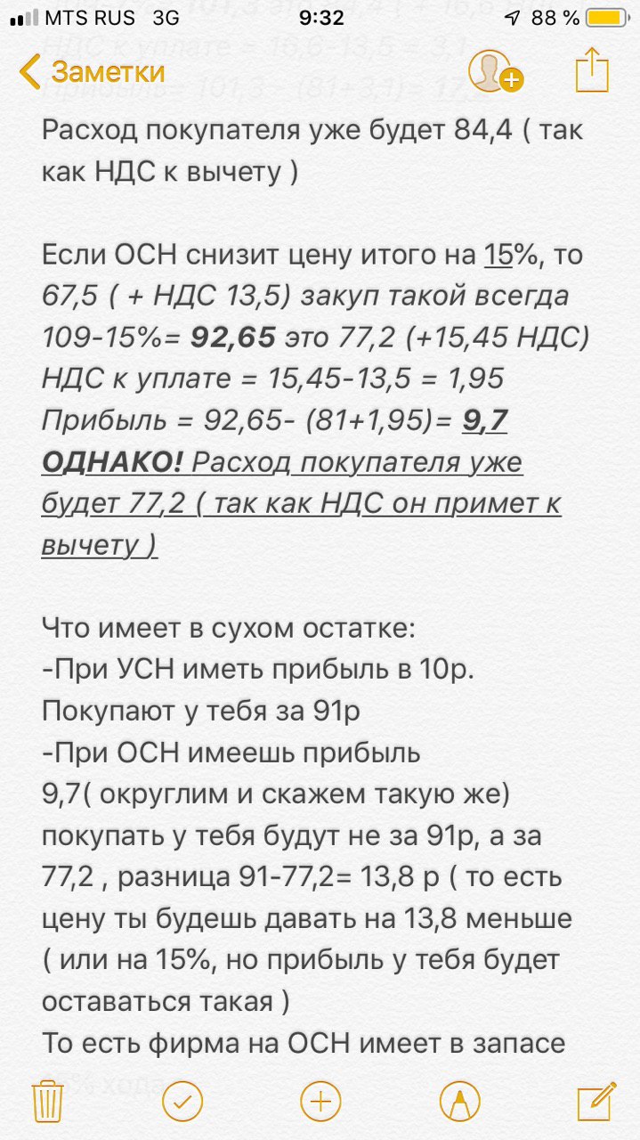Я посчитал. Выходит , что если я на УСН, то буду проигрывать 15% в цене в ходе торгов тому кто на ОСН, а маржа будет одинаковая. Правильно ли я считаю ( сейчас 2 скрина отправлю )