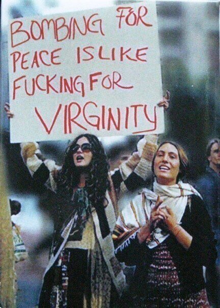 Легендарный девиз хиппи - «Бомбить ради мира - то же самое, что трахаться ради девственности». США. 70-е.