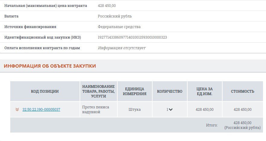 СМИ обратили внимание, что Депздрав Москвы разместил в июле госзакупку «протеза пениса надувного» за 428 450 рублей. Некоторые решили, что мэрия делает закупку для чиновника.