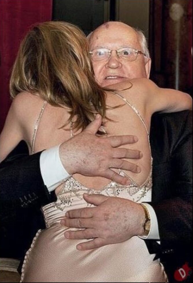 С Днём объятий, дорогие товарищи! Актриса Шерон Стоун и первый президент СССР Михаил Горбачёв. Лондон. Великобритания. 2011 г.