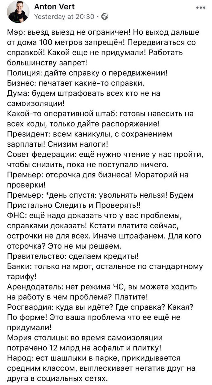 Я медленно снимаю с себя ответственность за финансовое обеспечение граждан, пусть отдохнут за счёт бизнеса.